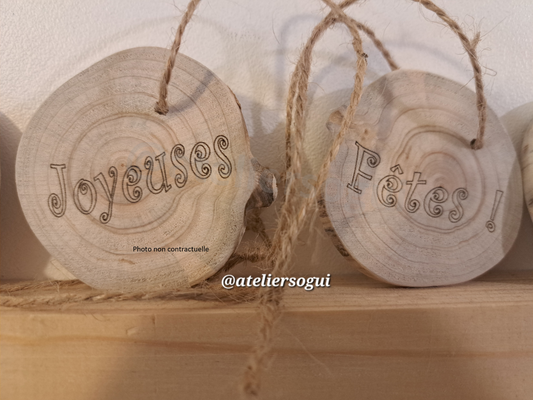 Dessous de verre "Fêtes de fin d'année", rond en bois massif